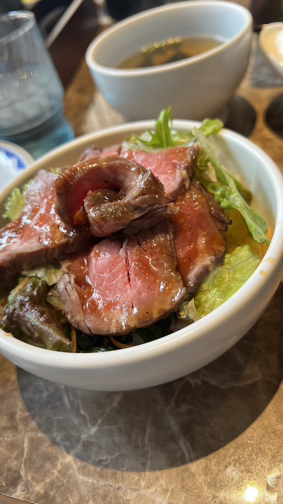 ローストビーフ丼は、中がビビンバみたいで美味しかった!