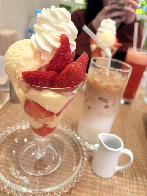 いちごパフェと、カフェラテを頼みました!