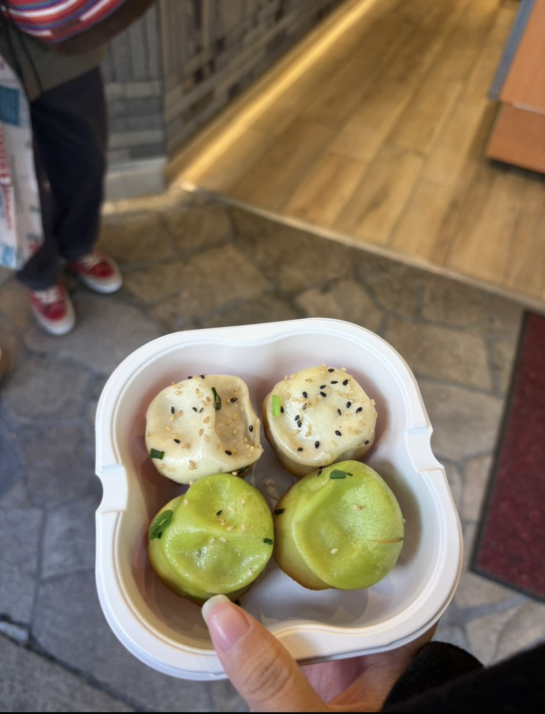 普通の豚肉?の小籠包と海鮮の小籠包を食べたよ!両方めっちゃ美味しいんだけど汁がだくだくで噛んだ時に飛び散るから気をつけて!!