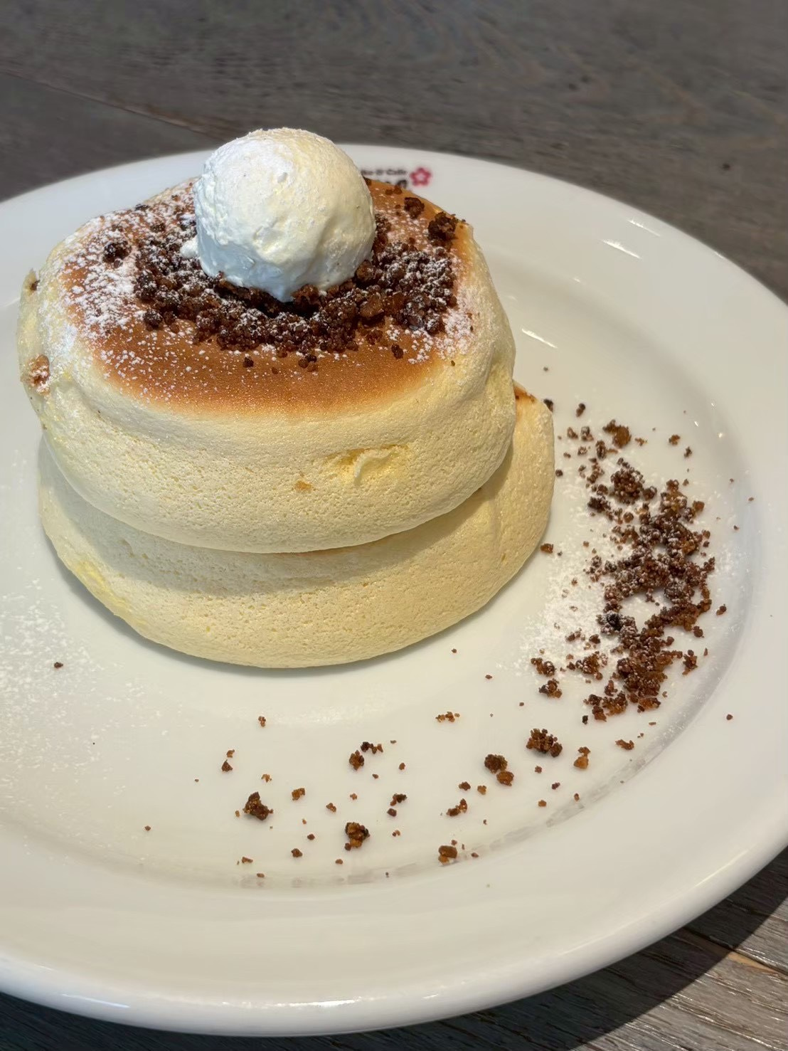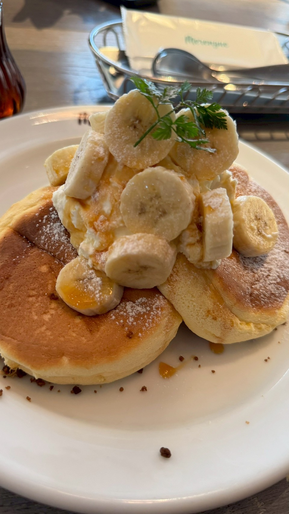 パンケーキはめっちゃフワッフワでまじメレンゲって感じで甘すぎずちょうどいい感じで美味しかった!